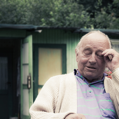 Ein älterer Mann mit Sehproblemen sitzt im Freien: Demenz und gleichzeitige Sehbe-hinderung sind für die Pflegenden eine Herausforderung. Bild: suze, photocase.com