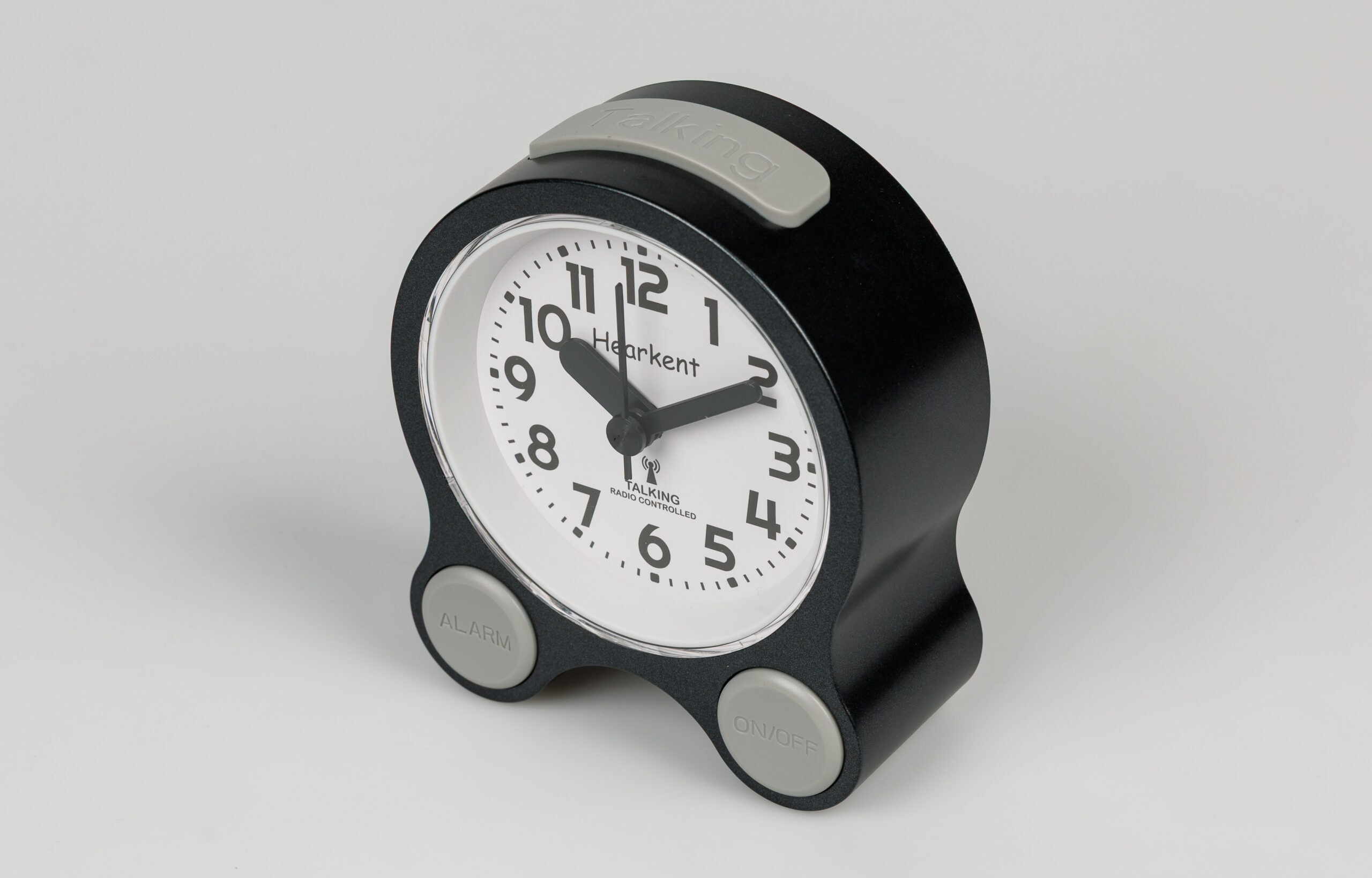 Hearkent est un réveil parlant contrôlé par radio, spécialement conçu pour les personnes aveugles, malvoyantes et sourdaveugles. Son annonce vocale fiable de la date, de l’heure et de la température en fait une aide pratique précieuse chez soi.