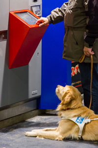 Der Hund führt zwar zum Billetautomaten – aber Touchscreen macht den Kauf schwierig.